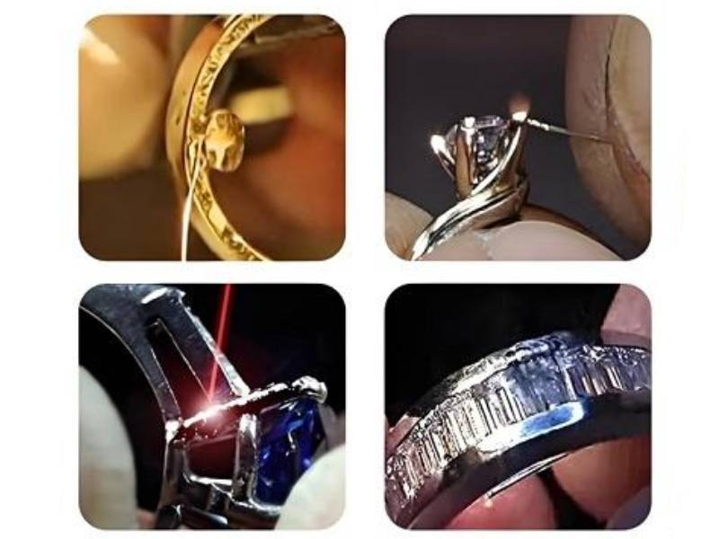 - Re-tipping prongs or tightening settings without removing gemstones