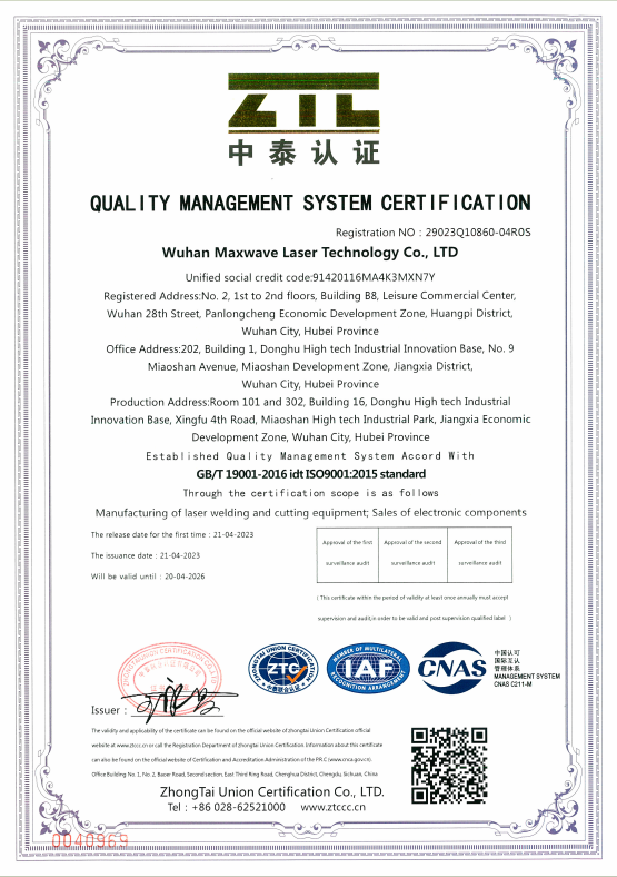 Our commitment to customer satisfaction is unparalleled. We provide full technical support, training, and after-sales service to ensure that your MaxWave laser machine operates at its best throughout its lifespan.